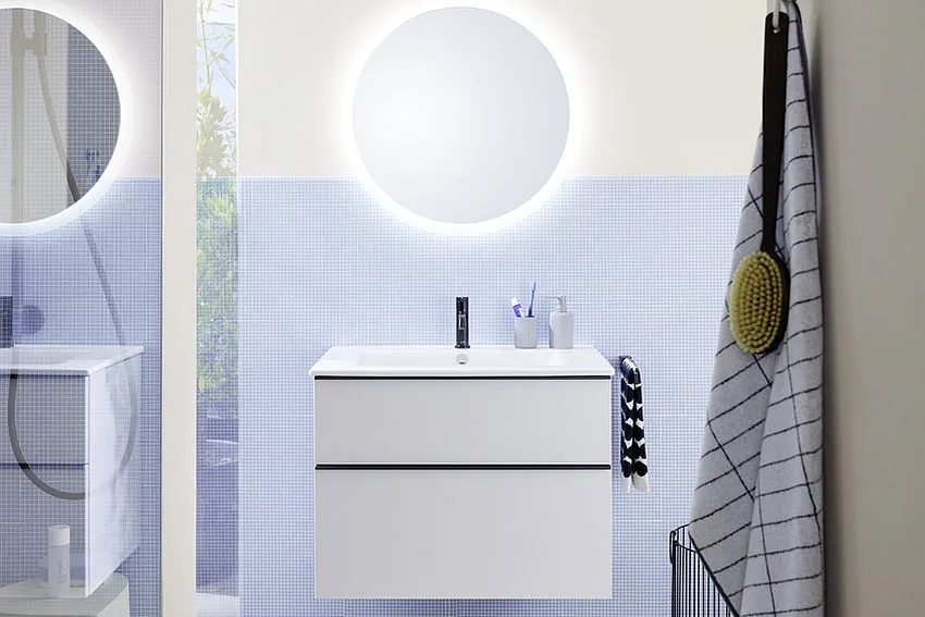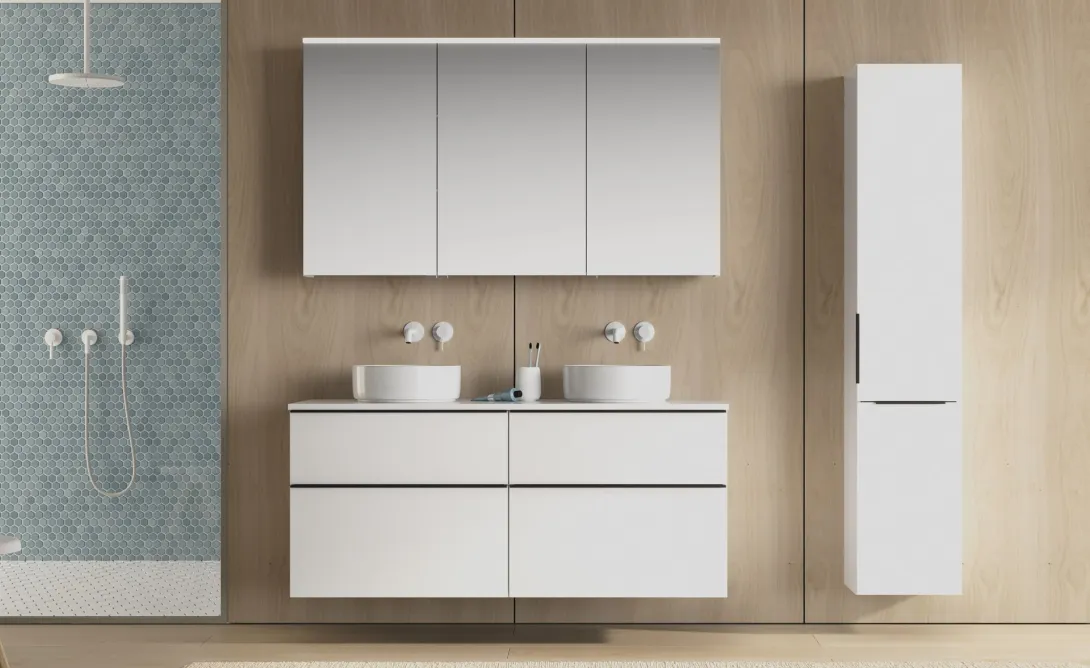 Eqio bietet Lösungen für jedes Bad – vom Gästebad bis zum Familienbad, mit vielfältigen Größen, Oberflächen und Stauraumkonzepten.