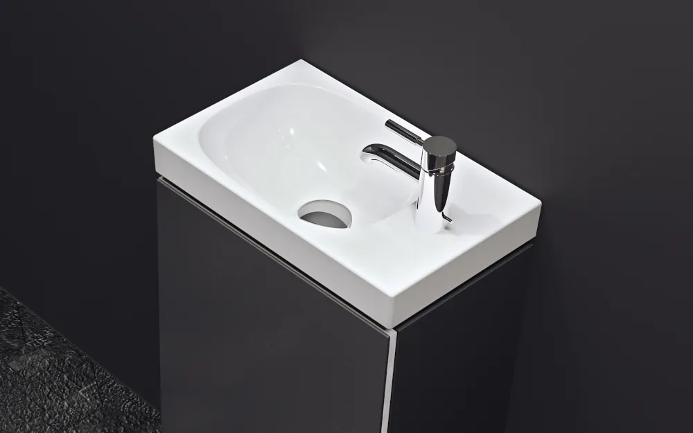 Die Waschtische von Acanto sind in vielen Größen als Standard-Waschtische, mit oder ohne Ablageflächen oder mit reduzierter Ausladung für kleine Bäder und Gästebadezimmer wählbar. Damit ermöglicht Geberit eine so zeitlose wie individuelle Badezimmergestaltung.