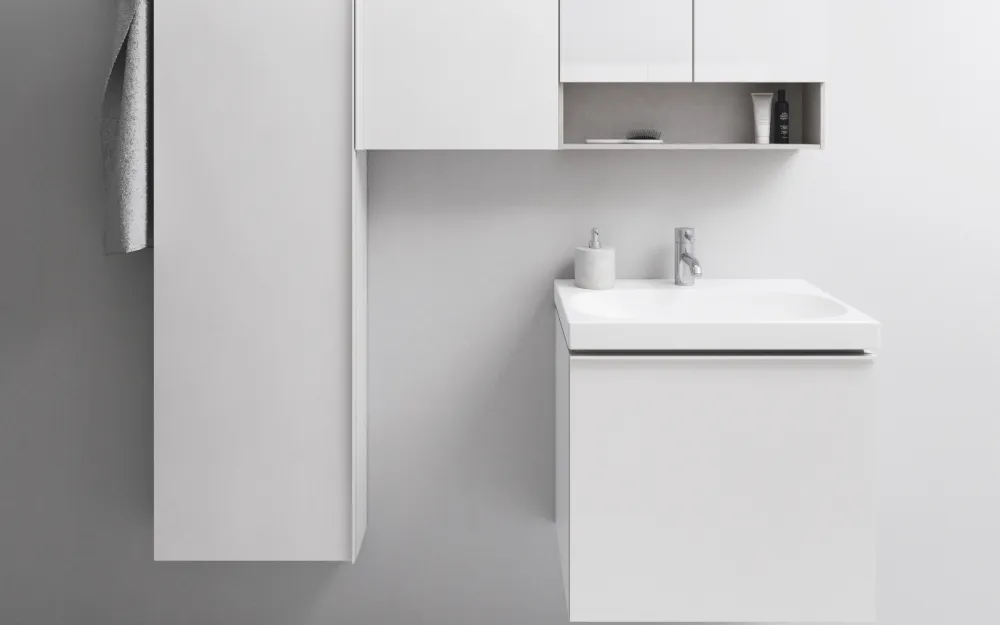 Das Design von Geberit Acanto verbindet unterschiedliche Materialien und Oberflächen auf harmonische Weise.