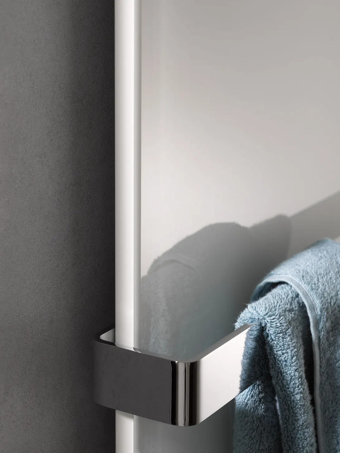 Nach Dusche oder Bad vorgewärmte Handtücher sind besonders im Winter angenehm. Häufig werden Handtücher jedoch direkt auf den Heizkörper gelegt, was dessen Leistung einschränkt. Mit dem HSK-Handtuchhalter lässt sich dies vermeiden: Er kann beidseitig am Heizkörper (z. B. Modell Alto) montiert werden, sodass Handtücher von rechts oder links leicht aufgeschoben und vorgewärmt werden können. Es passen zwei Halter auf jeden Designheizkörper, ohne die Heizleistung zu beeinträchtigen. Der Halter ist in Chromoptik oder klassisch als geschlossene Form in Chrom oder Weiß erhältlich.