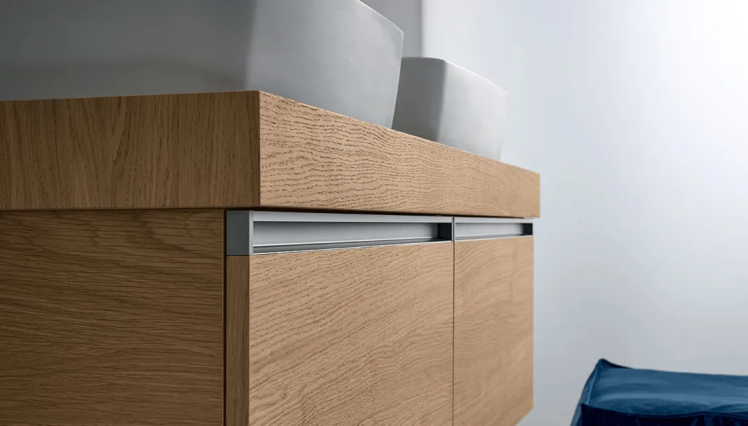 Der markante Aluminiumgriff verleiht dem Möbel eine elegante, detailbewusste Signatur.